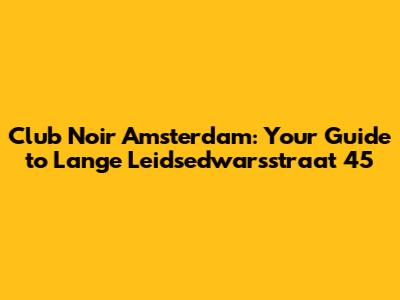 Club Noir Amsterdam: Your Guide To Lange Leidsedwarsstraat 45
